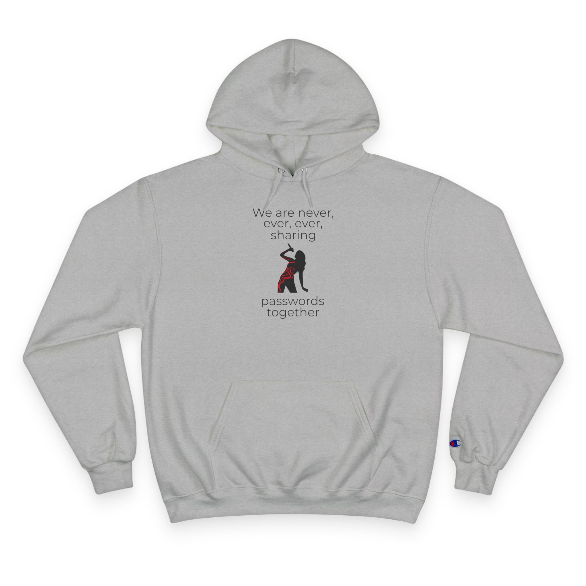Stay cozy and stylish with this Champion Hoodie promoting cybersecurity awareness with the message 'never share your password'. Featuring song lyrics that change the vibe of the design, this hoodie is perfect for tech-savvy individuals looking to make a statement about online security. This hoodie is a must-have for anyone who values comfort and style Ideal for wearing year-round.