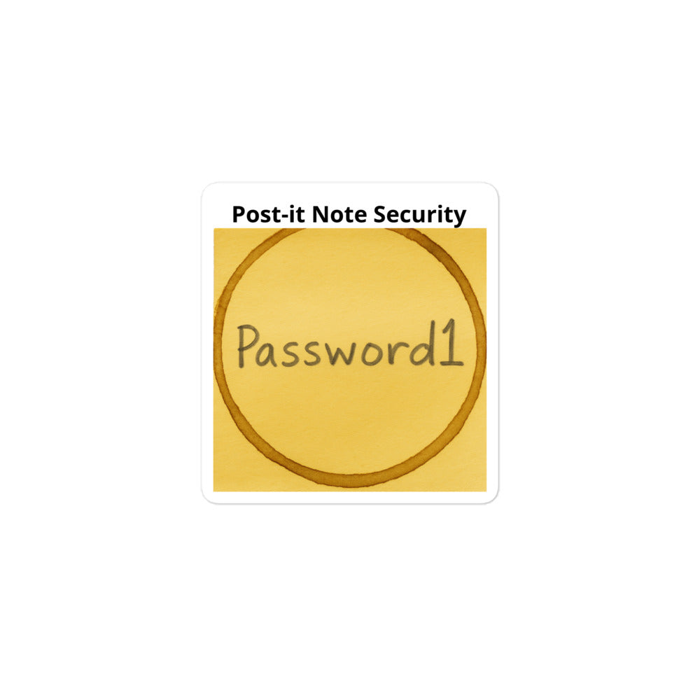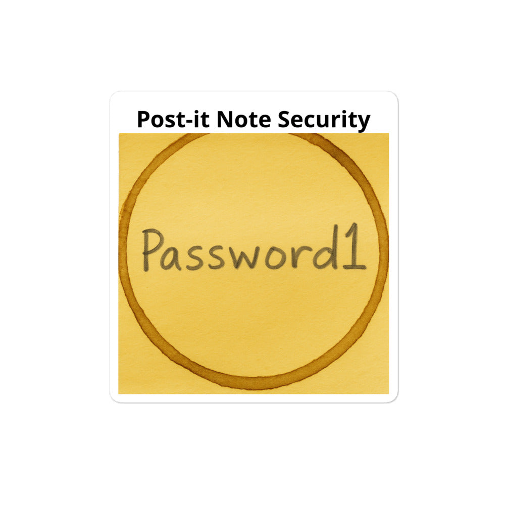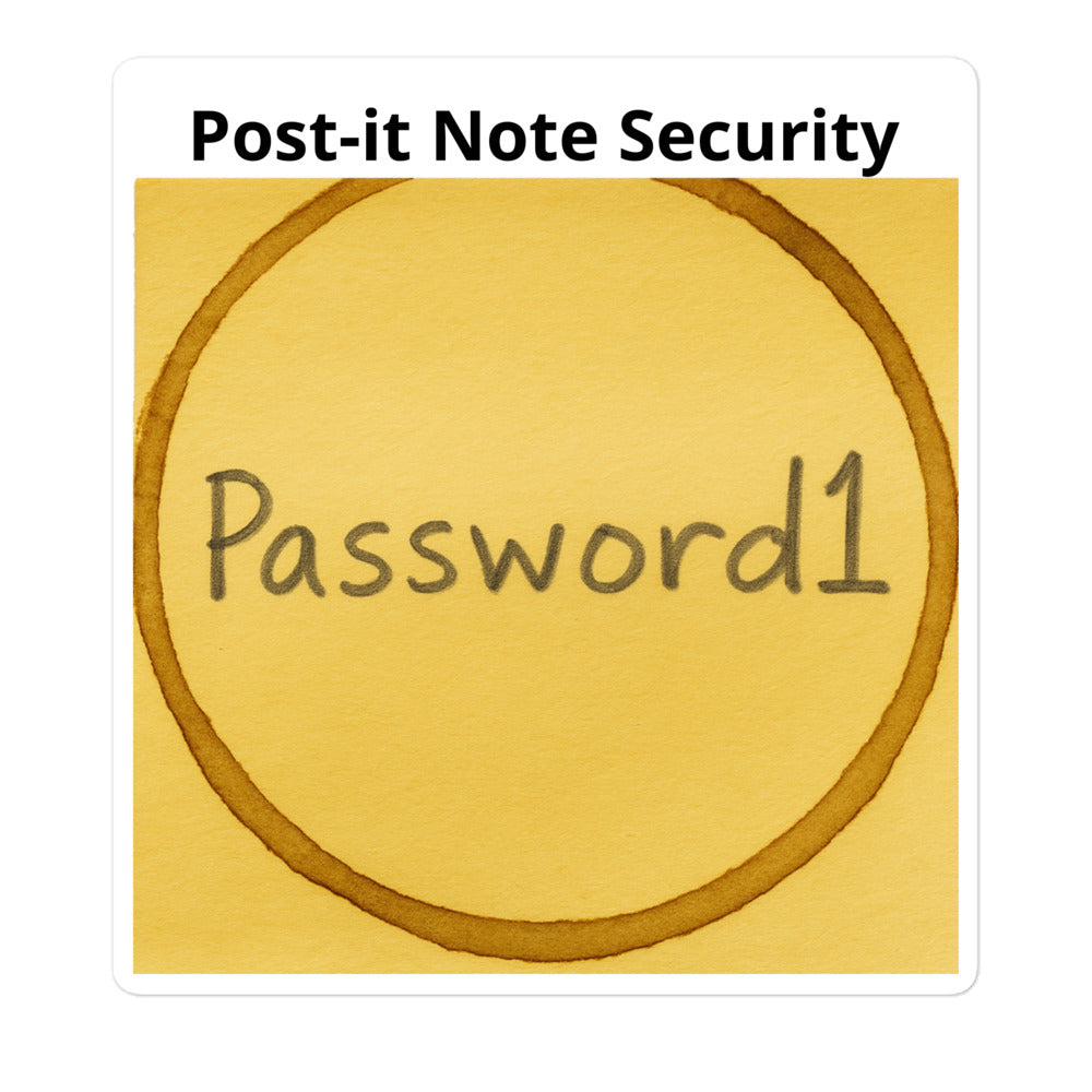 The Post-It Note Security design is a wearable tribute to the world’s most relatable security habit — the one IT keeps warning you about. Featuring everyone’s favorite weak password proudly displayed on a faux coffee-stained Post-it, this design blends irony, humor, and a little bit of truth about human nature.