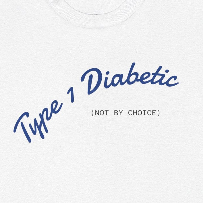 Type 1 Diabetic awareness shirt that says 'Not by Choice'. This Tee is perfect for raising awareness and showing support for those with Type 1 Diabetes. The simple yet impactful design can be worn casually or for special events, making it a versatile addition to anyone's wardrobe. Relevant for World Diabetes Day and any diabetic support events.