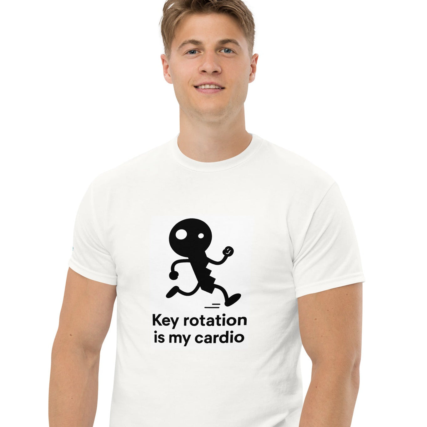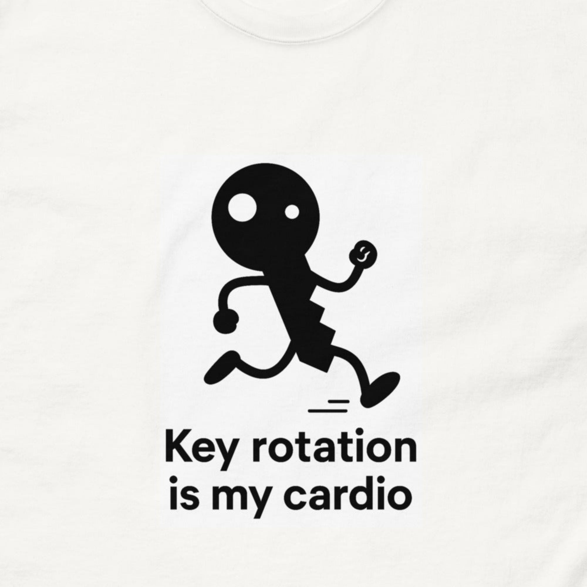 Product form Key rotation is my cardio - T-Shirt $24.99 S M L XL 2XL 3XL 4XL 5XL Size S M L XL 2XL 3XL 4XL 5XL SKU: 2846731_11576 Show extra info for delivery time Add to cart This item is a recurring or deferred purchase. By continuing, I agree to the cancellation policy and authorize you to charge my payment method at the prices, frequency and dates listed on this page until my order is fulfilled or I cancel, if permitted. For the cryptographers who take both security hygiene and step counts seriously.Whether you’re rotating keys or just running late to the next compliance meeting, this shirt says you’re staying fit and encrypted.Translation for non-security friends:You work hard to keep secrets safe—and occasionally break a sweat doing it.Features:Premium, soft-feel cotton (strong enough to survive quarterly audits)Lightweight, breathable, and built for marathon patch cyclesPrinted on demand—no plaintext, no plaintext inventoryPerfect for: PKI pros, crypto engineers, and anyone who laughs at entropy jokes• 100% cotton• Sport Grey is 90% cotton, 10% polyester• Ash Grey is 99% cotton, 1% polyester• Heather colors are 50% cotton, 50% polyester• Fabric weight: 5.0–5.3 oz/yd² (170-180 g/m²) Reviews 0 reviews Share with your friends Share WhatsApp Deel X Pin it Messenger Email Need help with your size? Size finder