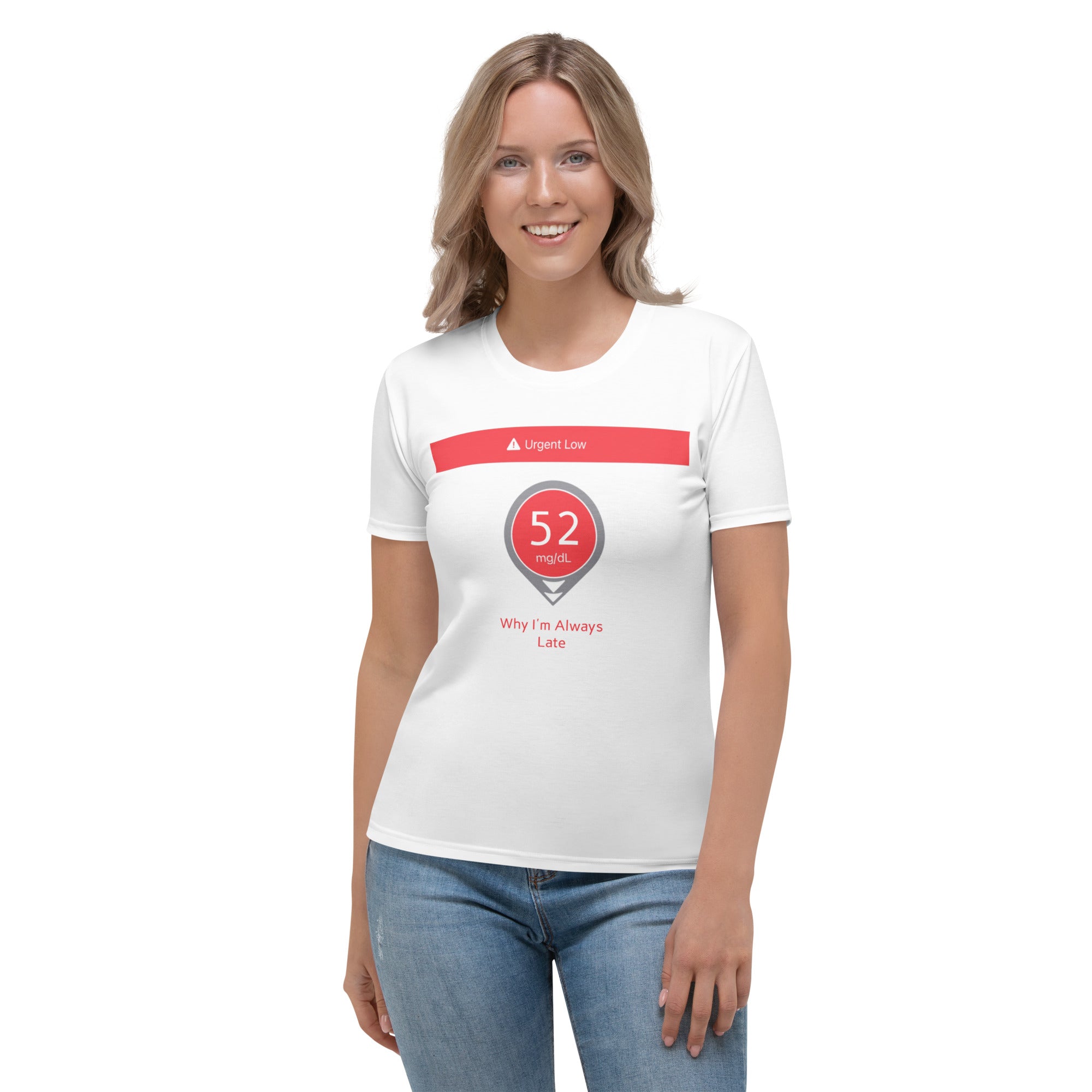 Featuring a realistic CGM-style alert reading 52 mg/dL and the words “Urgent Low” across the top, this shirt combines humor, awareness, and authenticity in one clean design. It’s perfect for everyday wear, awareness events, or as a conversation starter with those who just don’t get what “treating a low” really means.