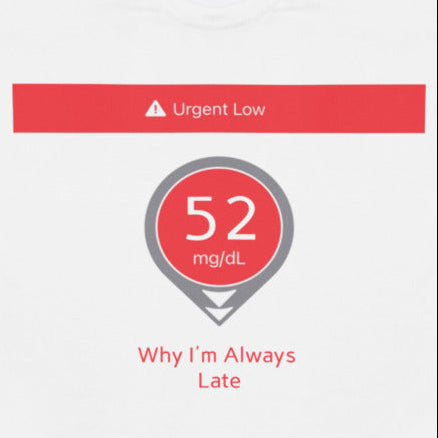 If you know, you know. For anyone living with Type 1 Diabetes, those urgent lows never seem to happen at a convenient time. This shirt says what every T1D has thought: “I’m not late, I’m low.”